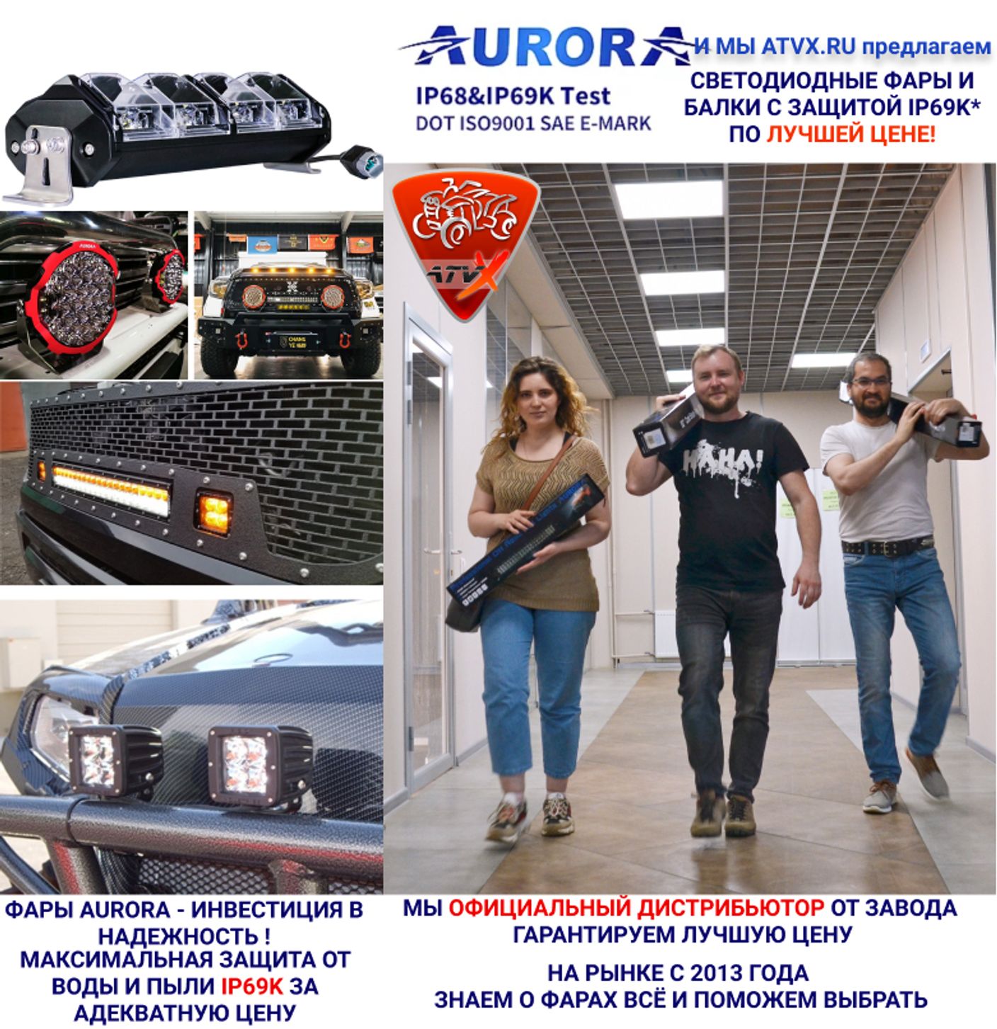 Фары Aurora - самое выгодное решение на рынке по соотношению цена\качество и единственные с максимальнйо защитой от воды и пыли IP69K за адекватную цену.