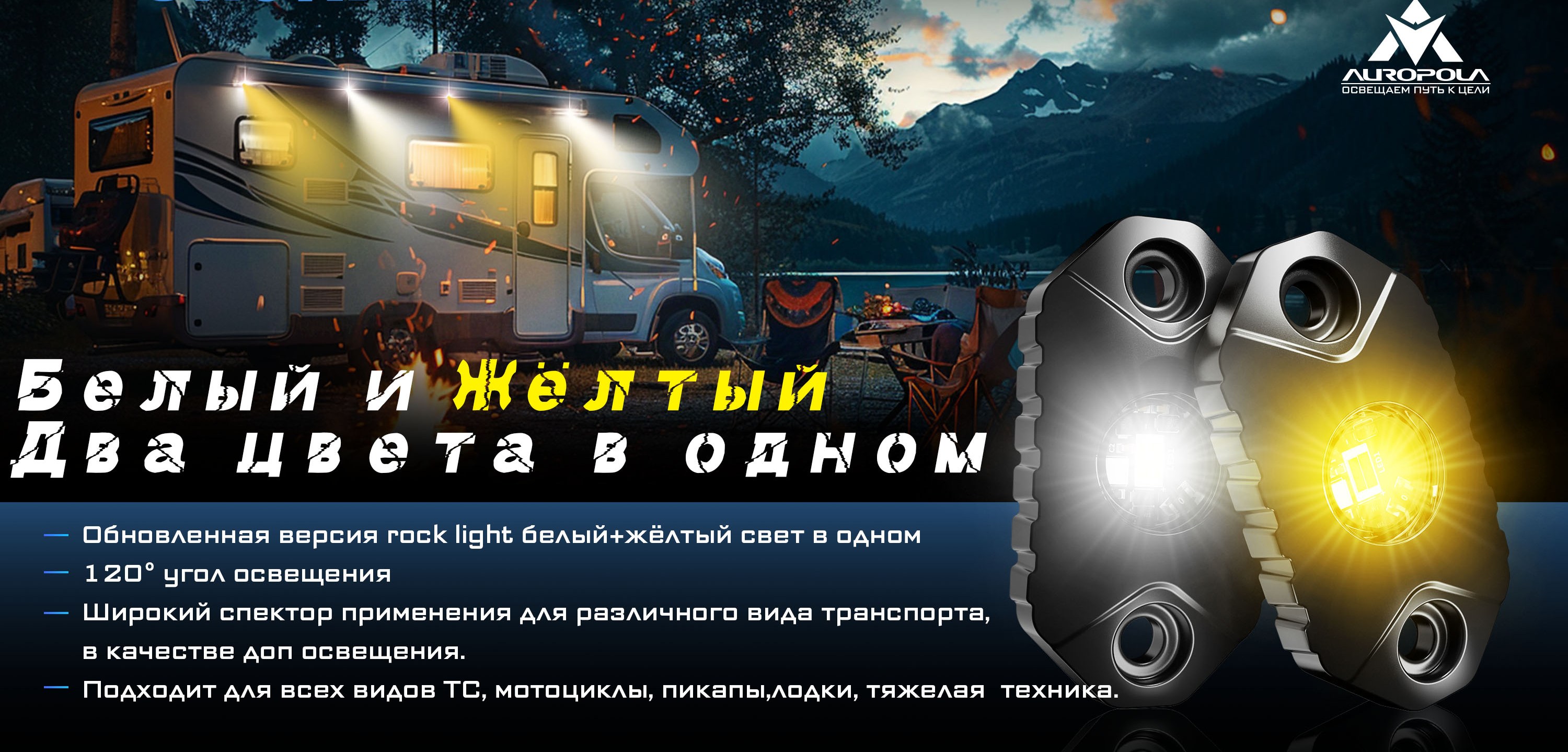 Представляем инновационное решение для освещения вашего автомобиля или внедорожника! Светильник сочетает в себе два режима освещения – жёлтый и белый свет, что делает его незаменимым помощником в любых дорожных условиях.