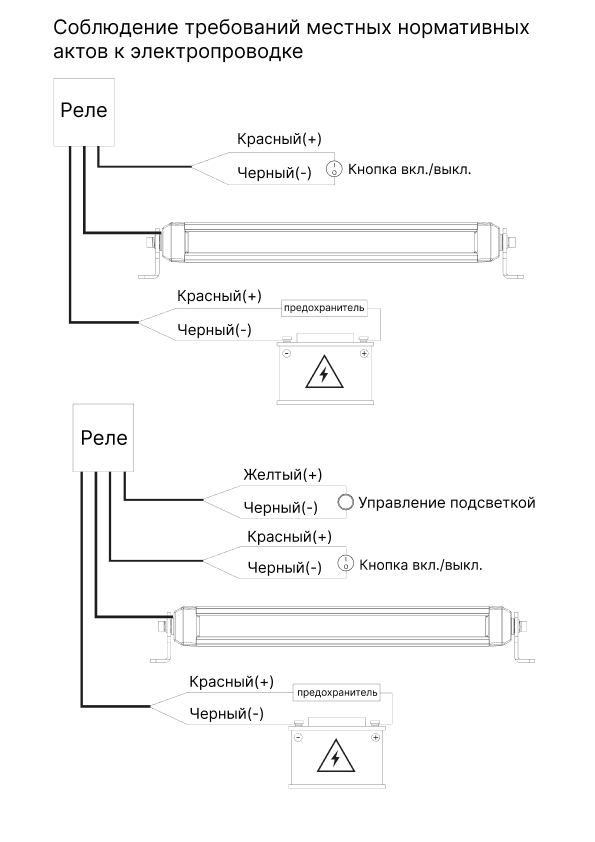 • Подсветка — янтарный + белый — стиль + законность в темноте