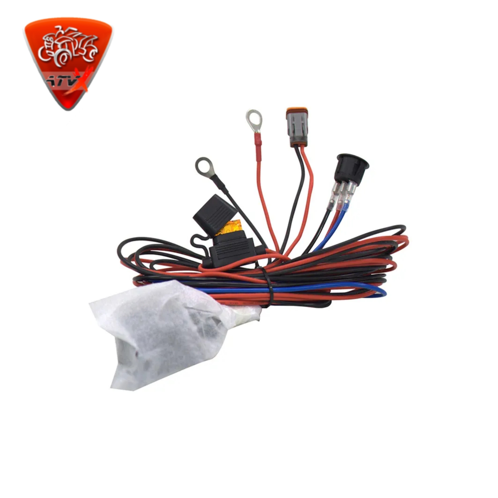 Комплект рассчитан на подключение 1 фары. Включает герметичный Deutch-коннектор, реле, герметичный предохранитель и выключатель с индикацией включения.